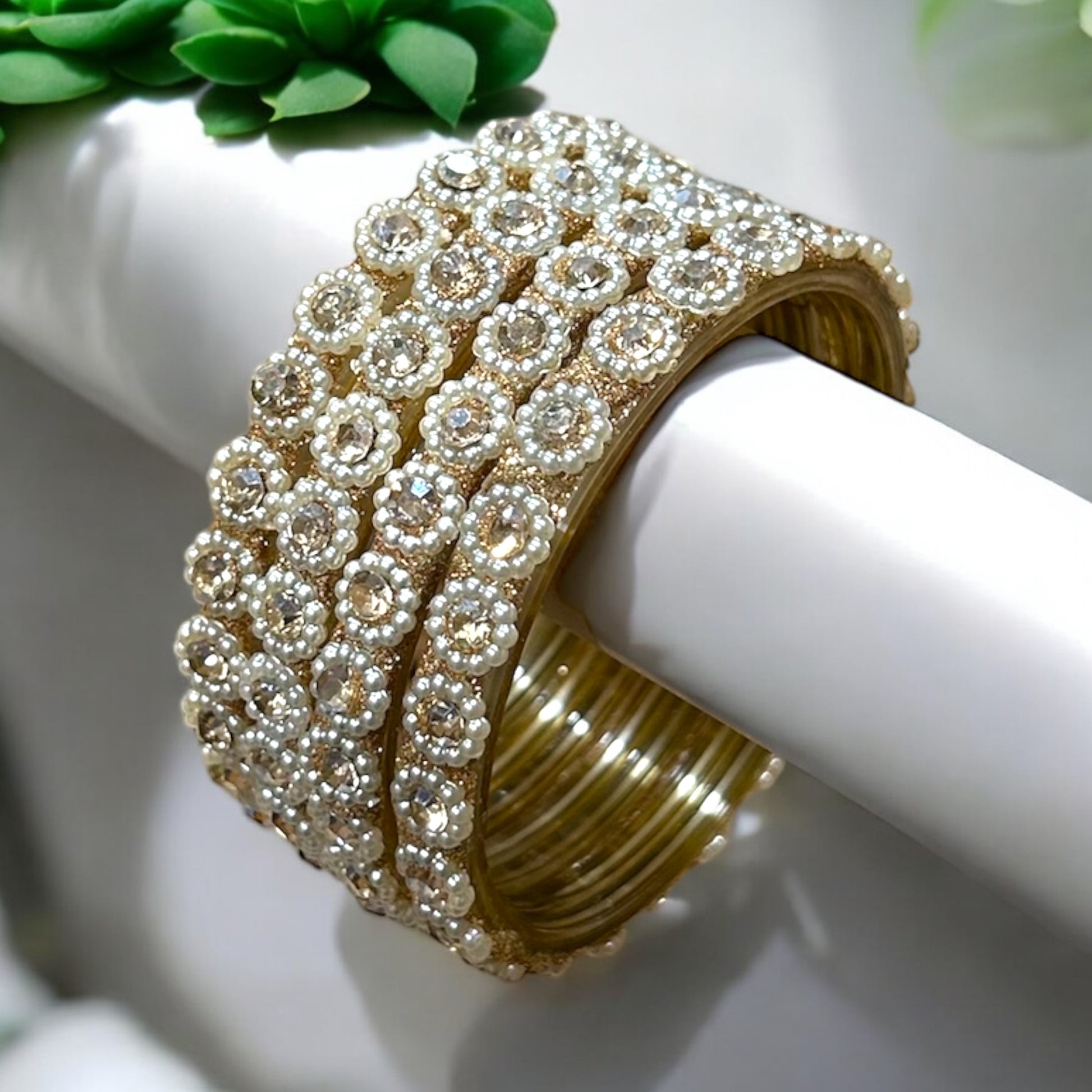 Malarvizhi • மலர்விழி • Pearl-Embellished Glass...